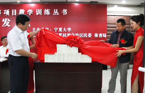 【宁夏大学新闻中心讯 黄二宁/图 翟伟 /文 】9月6日下午,《全国少数民族传统体育运动会竞赛项目教学训练丛书》出版首发式在我校A区主楼六楼会议室举行,自治区民族事务委员会副主任李文涛、自治区体育局副局长梁纪籽、我校校长何建国、副校长王燕昌、谢应忠、出席仪式,体育学院等相关部门负责人及学生代表近80人参加了首发式,仪式由谢应忠副校长主持。