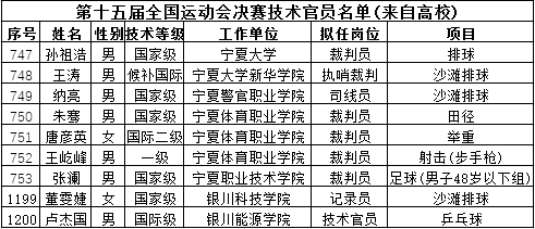 本届全运会宁夏高校共有9名裁判员担任相关运动项目裁判工作。排球项目比赛共分成年组、U20、U18三个大组,每个组别分别设男子、女子组,孙祖浩老师全程参与了排球项目男子18岁以下组别赛事的裁判工作。